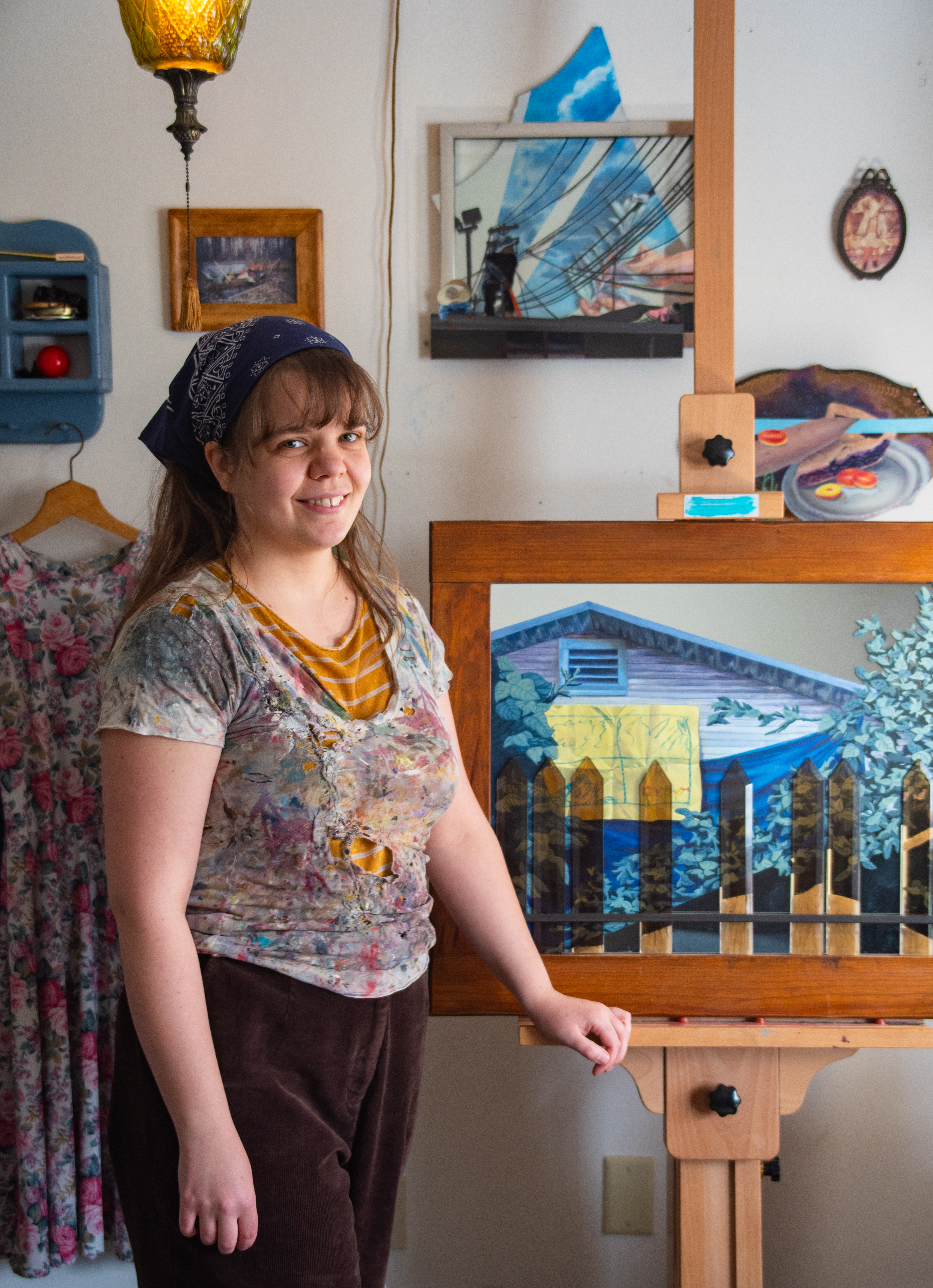 In her practice, Rachael discovered the patience of oil paint, which allowed her to capture intricate details with deliberate care. This encouraged her by providing the ability to preserve her keepsakes, and ultimately the memories within them, in a way that felt eternal. To then further push the connection she longed for as a child, she uses reflective surfaces—specifically mirrors and glass—to transform her paintings into dynamic experiences, inviting the viewer to not only observe but also become a part of the work. In this way, these surfaces create spaces where memory is not only honored but shared.