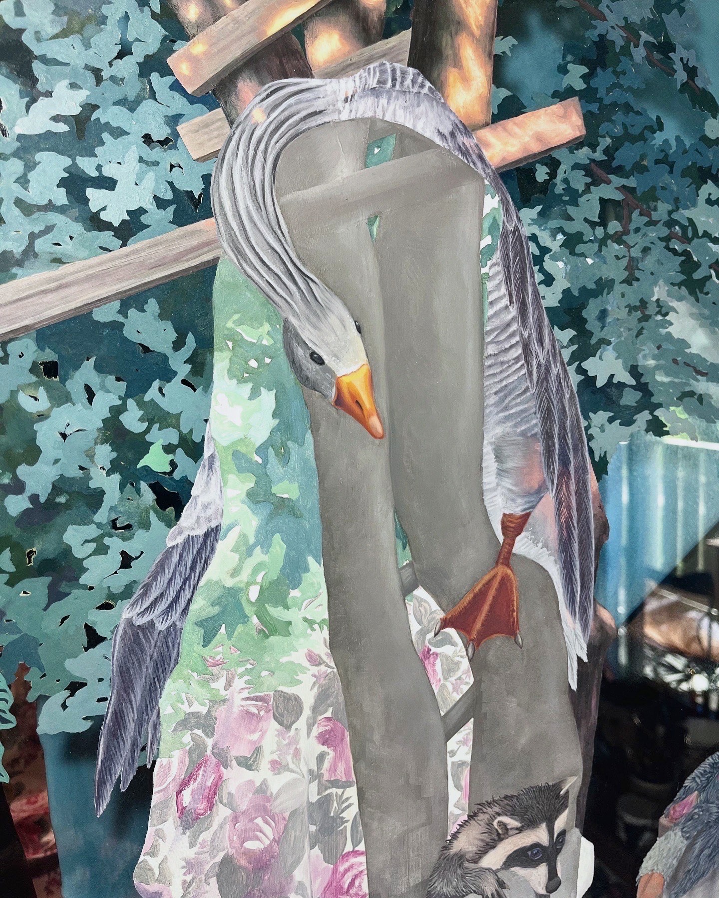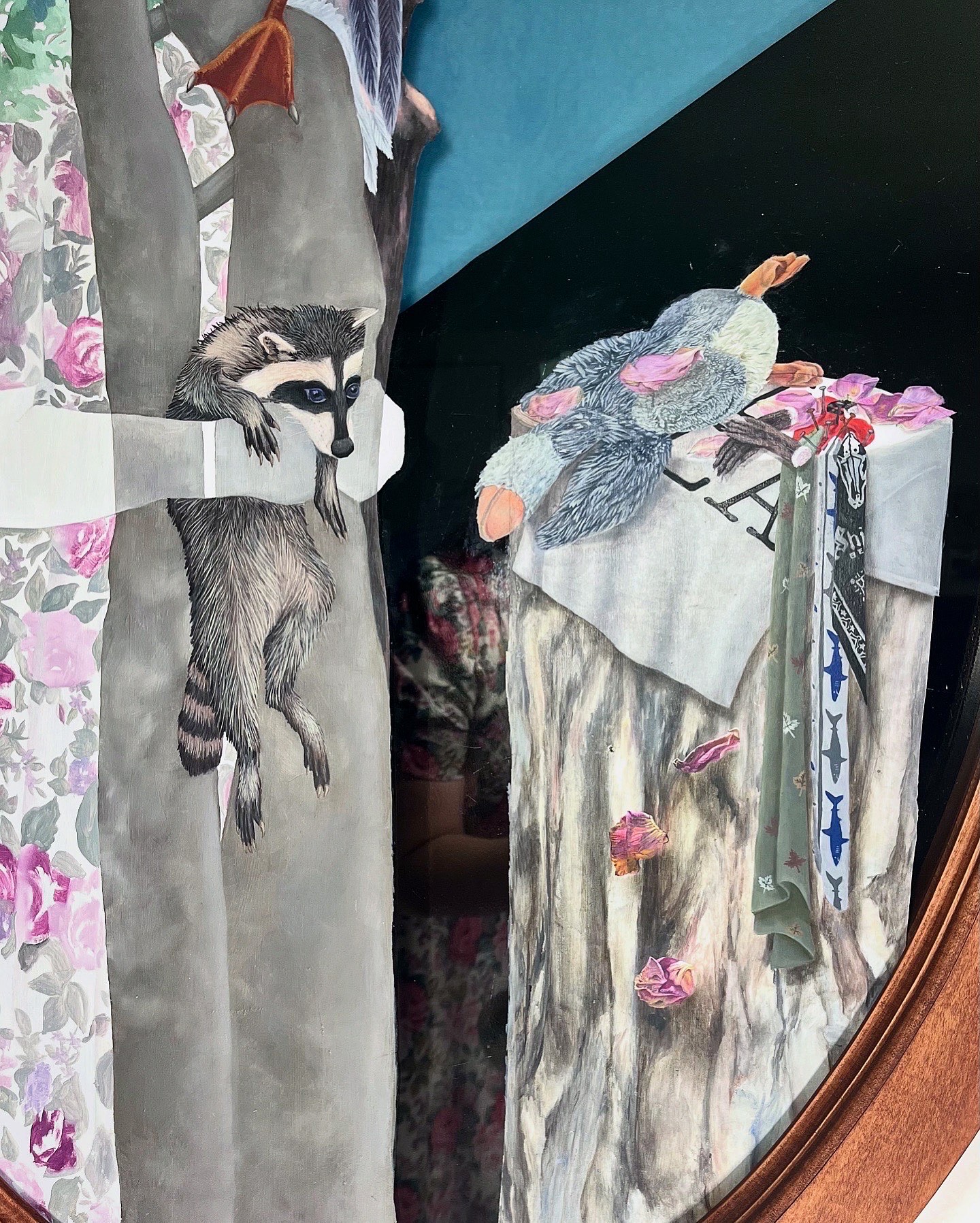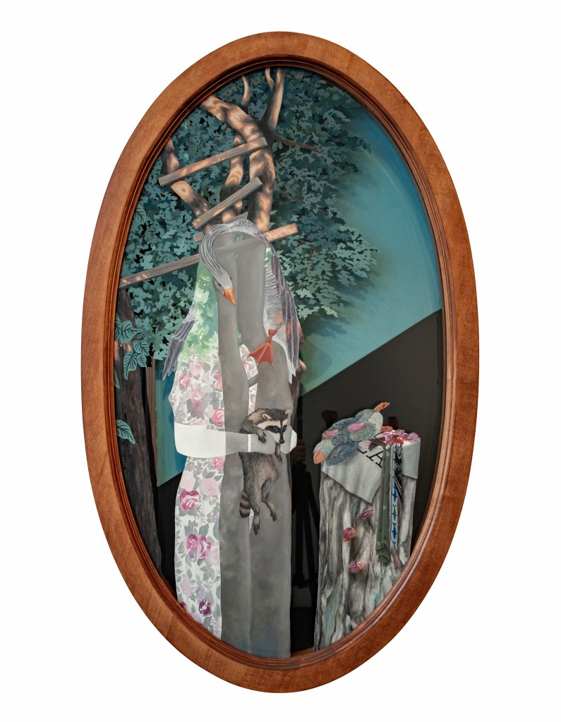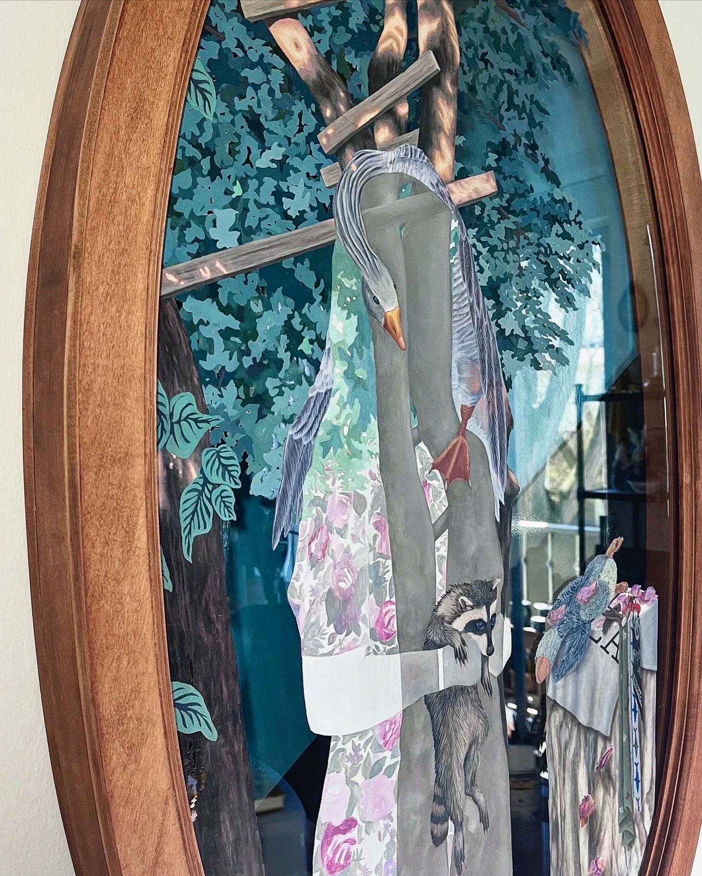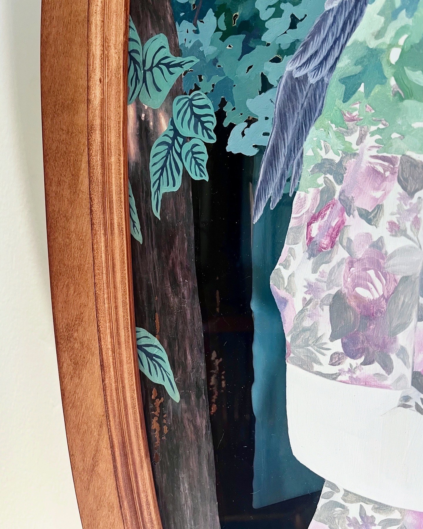 Oil Paint, Layered Mirror and Glass, Handcrafted Wooden Frame